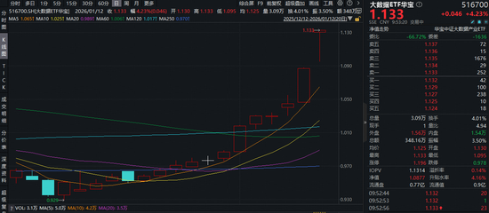 太强了!今日(1月12日)AI应用端继续狂飙,聚焦数据技术、数据安全领域的大数据ETF华宝(516700)场内价格暴拉4.23%,冲击日线12连阳!